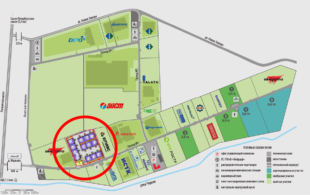 Индустриальный парк «Марьино» расположен в Петродворцовом районе Санкт-Петербурга.