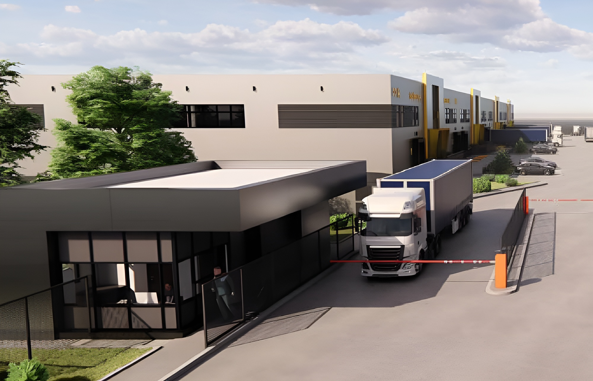 - Парковка грузового и легкового транспорта перед зданием.